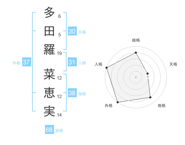 多田羅 菜恵実さんを姓名の画数から五運を鑑定