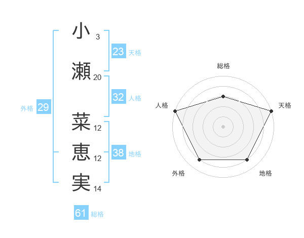 小瀬 菜恵実さんの天格は23画の5点!