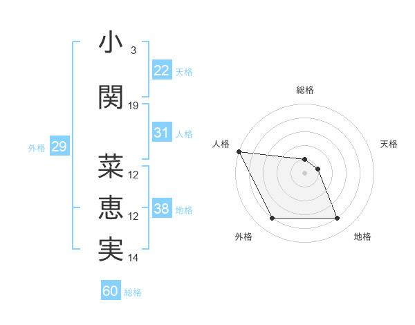 小関 菜恵実さんを姓名の画数から五運を鑑定