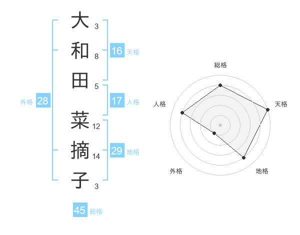 大和田 菜摘子さんを姓名の画数から五運を鑑定