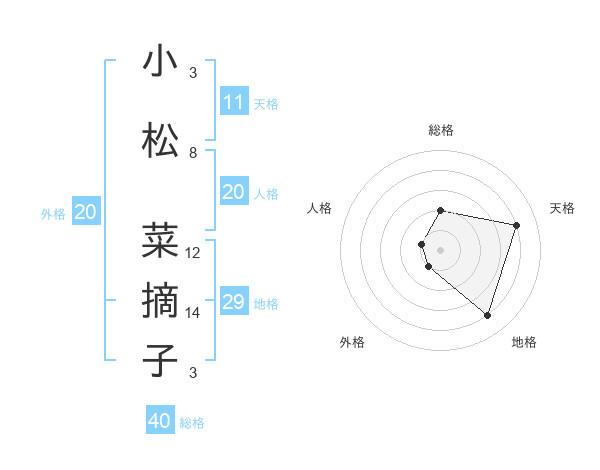 小松 菜摘子さんを姓名の画数から五運を鑑定