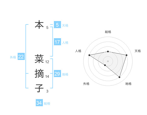 本 菜摘子さんの総格は34画の2点!