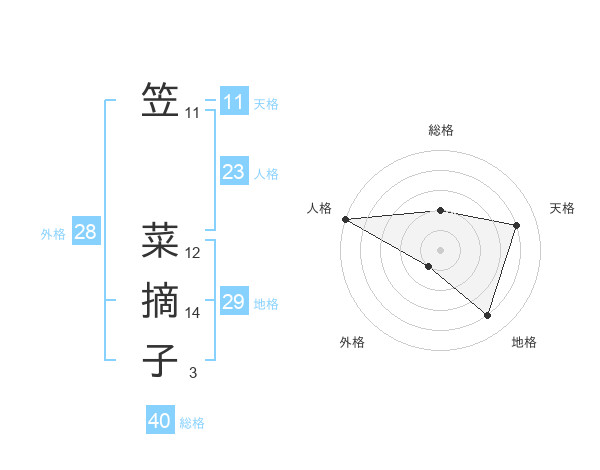 笠 菜摘子さんの地格は29画の4点!