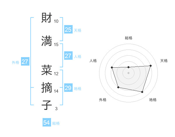 財満 菜摘子さんを姓名の画数から五運を鑑定