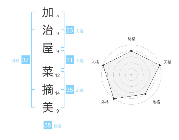 加治屋 菜摘美さんを姓名の画数から五運を鑑定