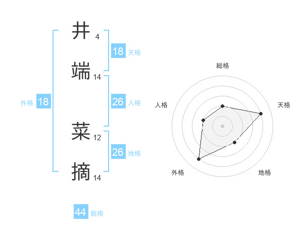 井端 菜摘さんの総格は44画の2点!