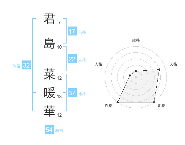 君島 菜暖華さんの外格は32画の5点!