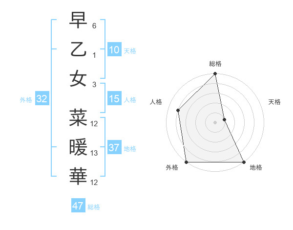 早乙女 菜暖華さんの総格は47画の5点