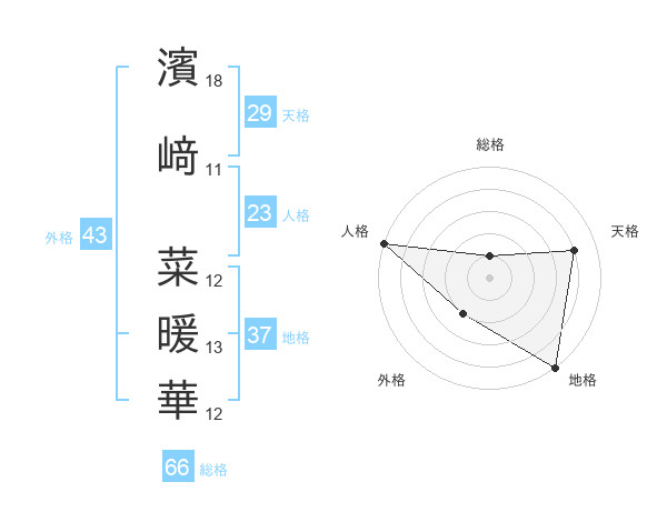 濱﨑 菜暖華さんの天格は29画の4点!