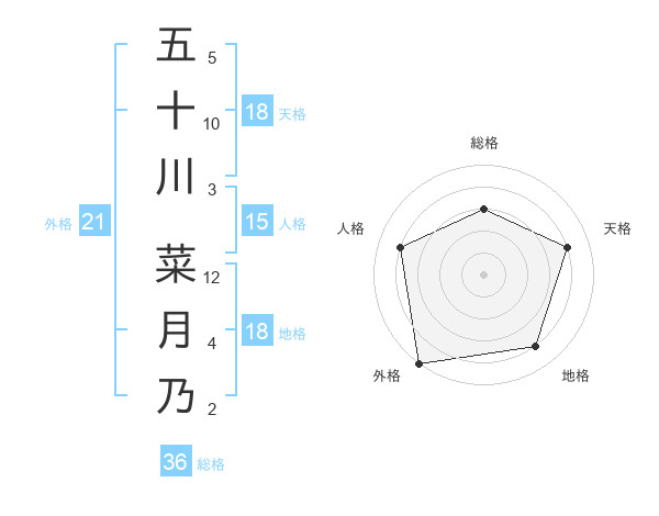五十川 菜月乃さんを姓名の画数から五運を鑑定