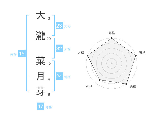 大瀧 菜月芽さんの総格は47画の5点!
