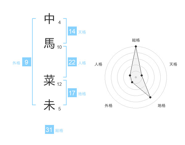 中馬 菜未さんの総格は31画の5点!