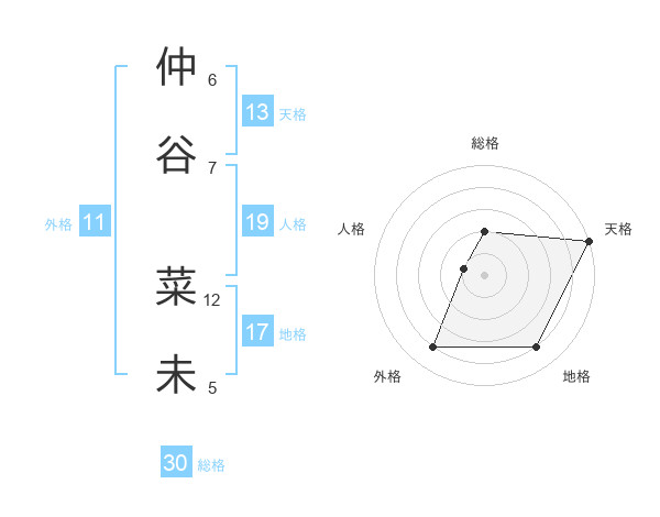 仲谷 菜未さんの天格は13画の5点!