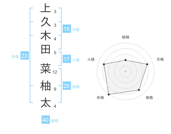 上久木田 菜柚太さんの外格は23画の5点!