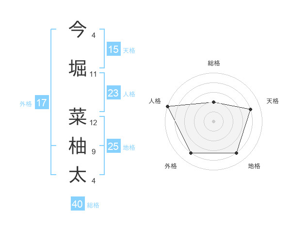 今堀 菜柚太さんの地格は25画の4点!