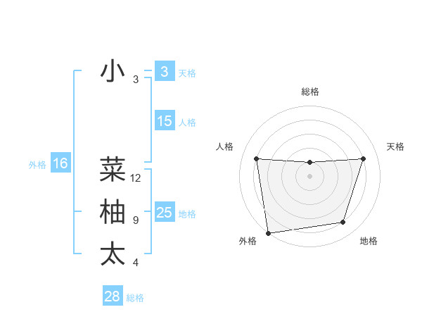 小 菜柚太さんの総格は28画の1点!