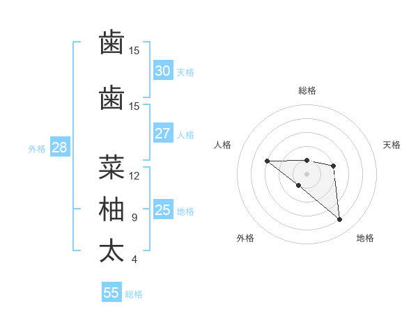 歯歯 菜柚太さんの総格は55画の1点!