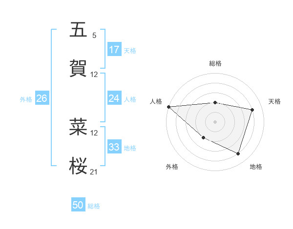 五賀 菜桜さんを姓名の画数から五運を鑑定