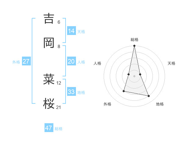 吉岡 菜桜さんの総格は47画の5点!