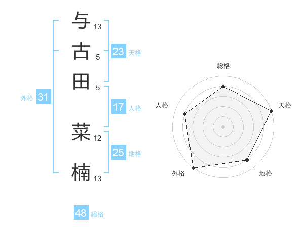 与古田 菜楠さんの天格は23画の5点!