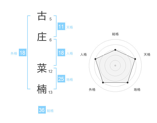 古庄 菜楠さんの総格は36画の3点!