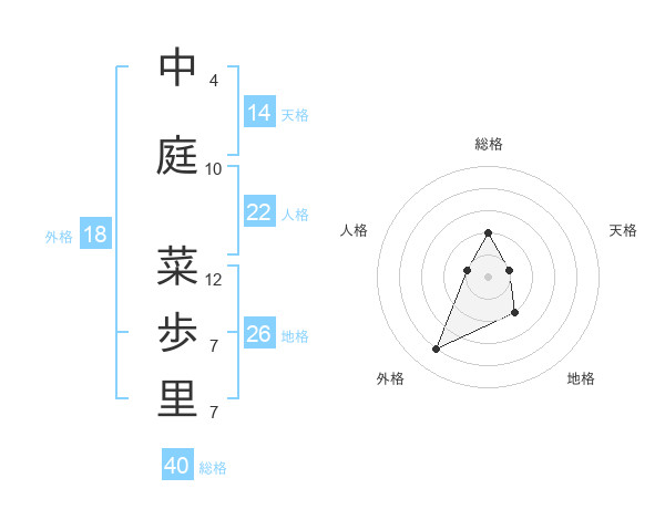 中庭 菜歩里さんを姓名の画数から五運を鑑定