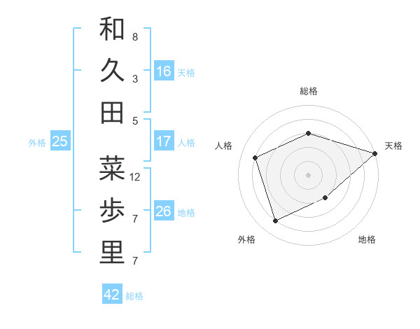 和久田 菜歩里さんを姓名の画数から五運を鑑定