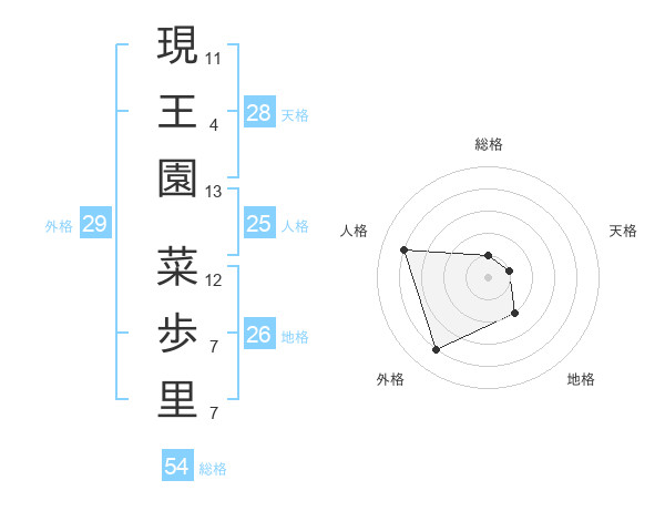 現王園 菜歩里さんを姓名の画数から五運を鑑定