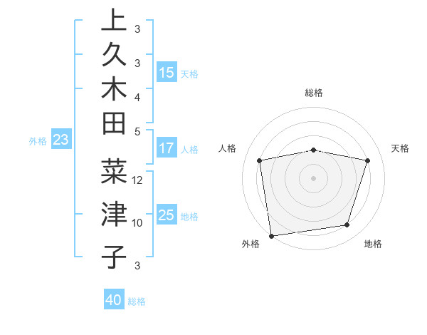 上久木田 菜津子さんを姓名の画数から五運を鑑定