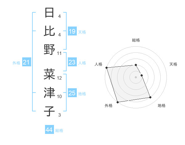 日比野 菜津子さんを姓名の画数から五運を鑑定