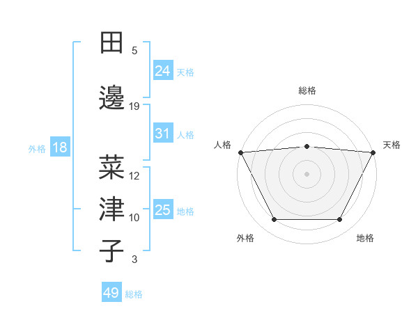 田邊 菜津子さんを姓名の画数から五運を鑑定