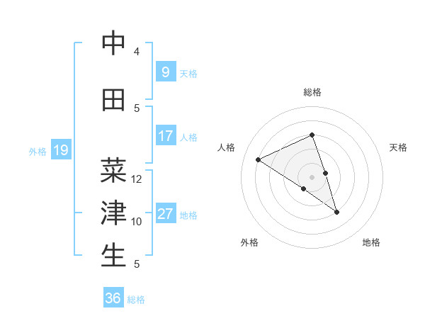中田 菜津生さんを姓名の画数から五運を鑑定