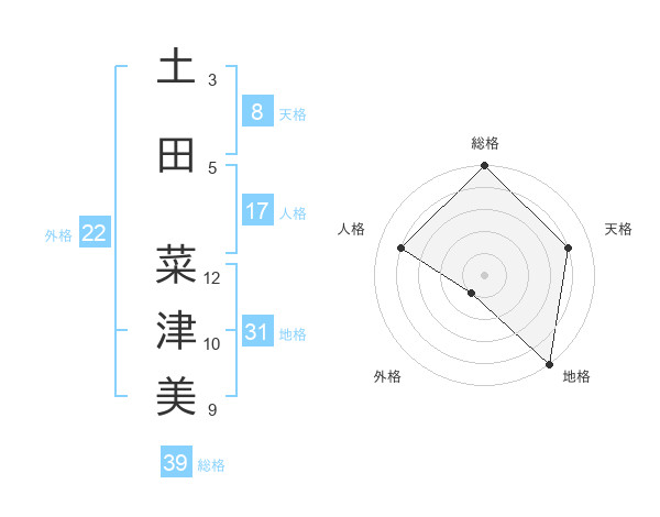 土田 菜津美さんの総格は39画の5点!