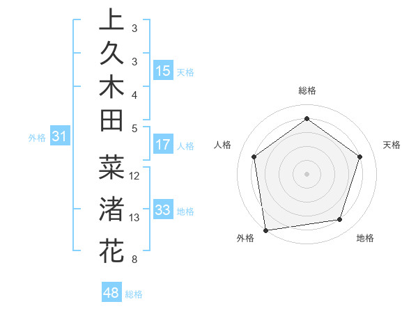 上久木田 菜渚花さんを姓名の画数から五運を鑑定