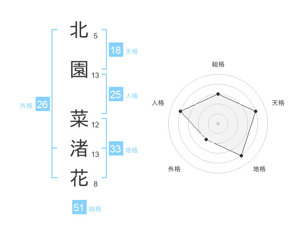 北園 菜渚花さんを姓名の画数から五運を鑑定
