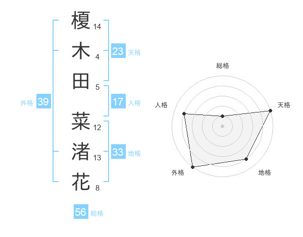 榎木田 菜渚花さんを姓名の画数から五運を鑑定