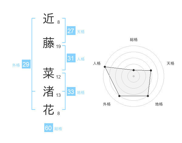 近藤 菜渚花さんの総格は60画の1点