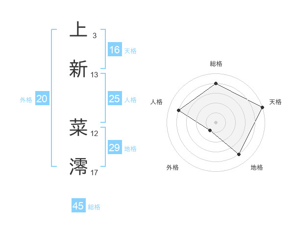 上新 菜澪さんの地格は29画の4点!
