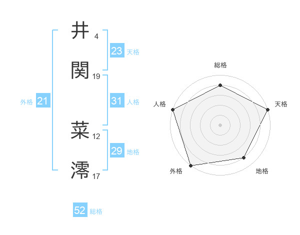 井関 菜澪さんの外格は21画の5点!
