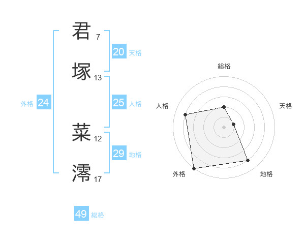 君塚 菜澪さんの外格は24画の5点!