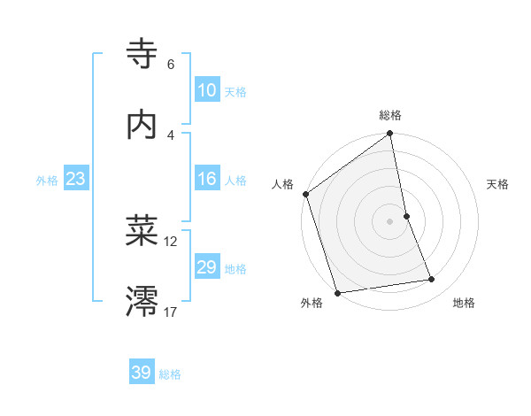 寺内 菜澪さんの総格は39画の5点!