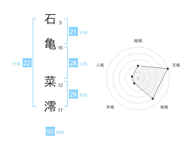石亀 菜澪さんを姓名の画数から五運を鑑定
