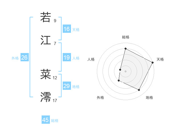 若江 菜澪さんの総格は45画の4点!