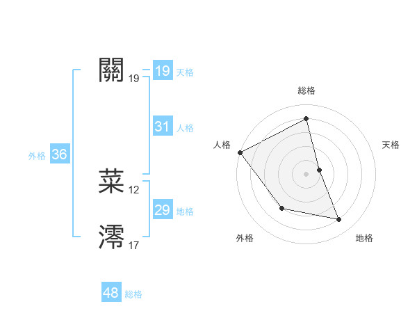 關 菜澪さんの総格は48画の4点!