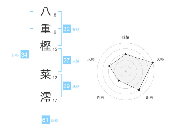 八重樫 菜澪さんを姓名の画数から五運を鑑定