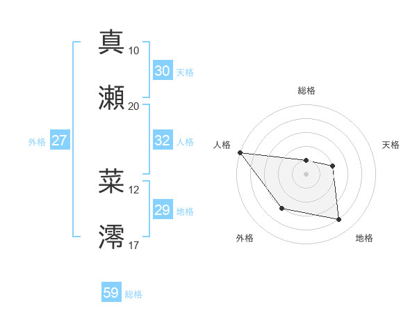 真瀬 菜澪さんの天格は30画の2点!