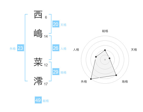 西嶋 菜澪さんを姓名の画数から五運を鑑定