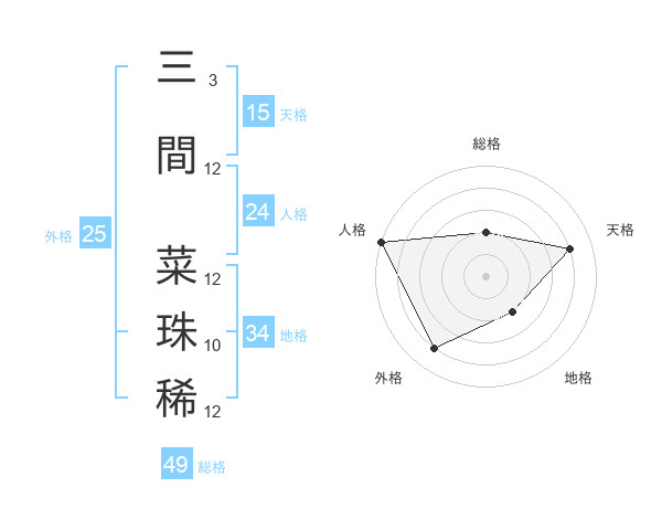 三間 菜珠稀さんを姓名の画数から五運を鑑定