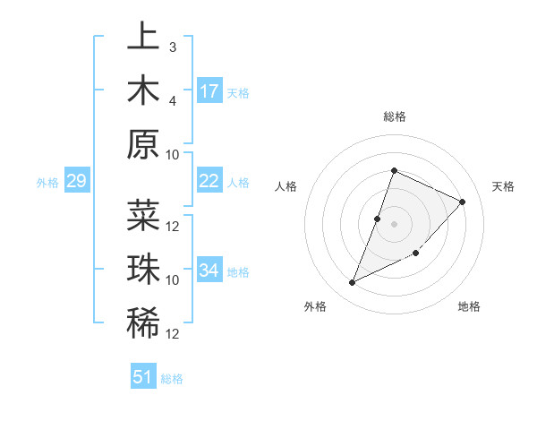 上木原 菜珠稀さんを姓名の画数から五運を鑑定