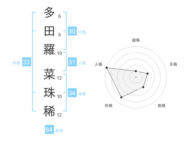 多田羅 菜珠稀さんを姓名の画数から五運を鑑定